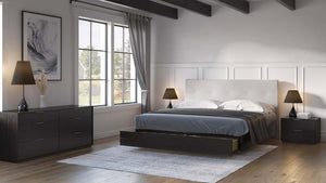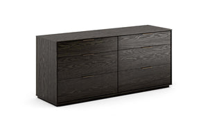 The Amelia collection features a bold, modern design with clean lines and a strong architectural presence. The wide drawer fronts highlight the natural character of the wood, while slim horizontal metal pulls add a refined, contemporary accent. Each piece is designed with a low-profile base that enhances the streamlined silhouette and creates a grounded, cohesive look. Combining generous storage with sophisticated styling, Amelia brings a modern, polished feel to the bedroom.