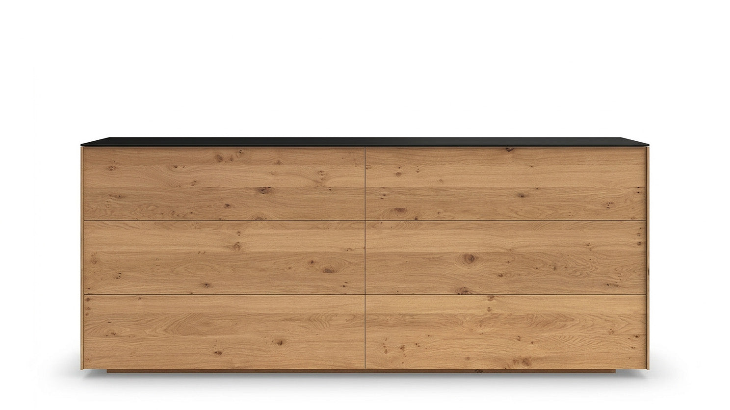 The Avita collection combines clean, modern lines with the natural character of wood to create a warm yet streamlined look. The wide, horizontal drawer fronts highlight the unique grain patterns while maintaining a smooth, minimalist appearance. Drawers are mounted on push-to-open slides, eliminating the need for visible hardware and enhancing Avita’s sleek design. Each piece is topped with a glass surface available in a choice of colors, adding a refined accent and a customizable touch to the overall aesthetic.