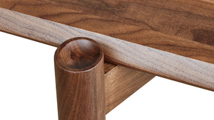- The beveled tabletop and dowel legs are crafted from solid walnut or solid oak.